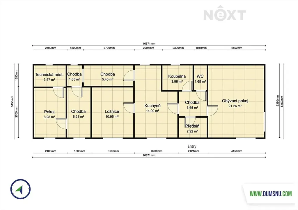 Uvnitř domu se nachází kuchyň, chodba, ložnice, koupelna s vanou a samostatná toaleta.