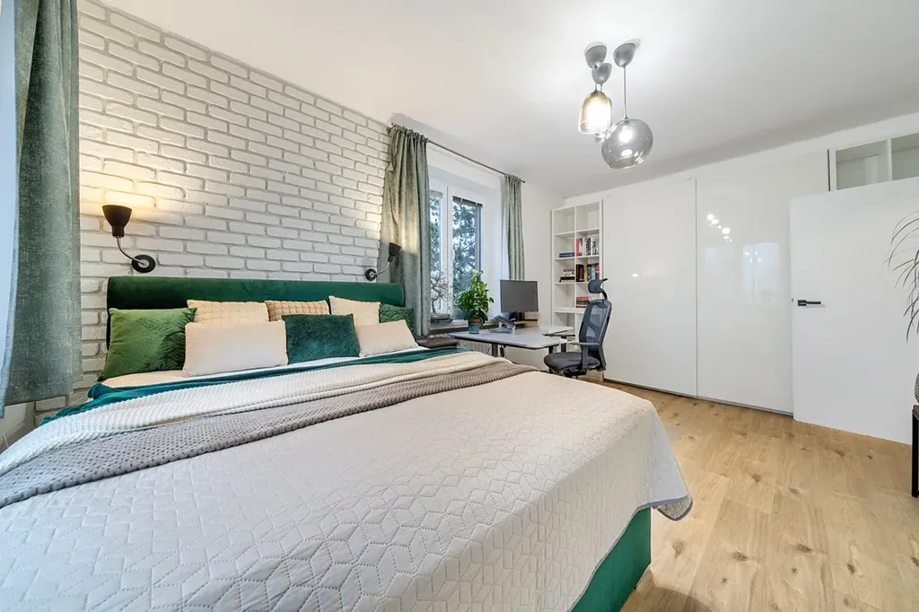 V ceně je veškeré vybavení: pračka, TV, závěsy, postel (bez matrace), kuchyňský stůl a židle, botník, vestavěné skříně, kuchyňská linka se spotřebiči (sporák, trouba, myčka,). Plastová okna, plovoucí podlahy, dlažba.