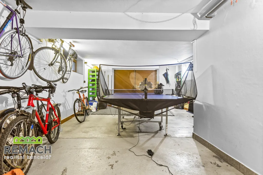 Ve vyvýšených sklepních prostorech (všechny prostory se sklepními okny) se nachází garáž s dílnou, prádelna se sprchovým koutem a plynovým kotlem, 2 zařízené pracovny, úložná komora a studený sklep" garáž ( vjezd do ní je z čela domu z hlavní ulice )