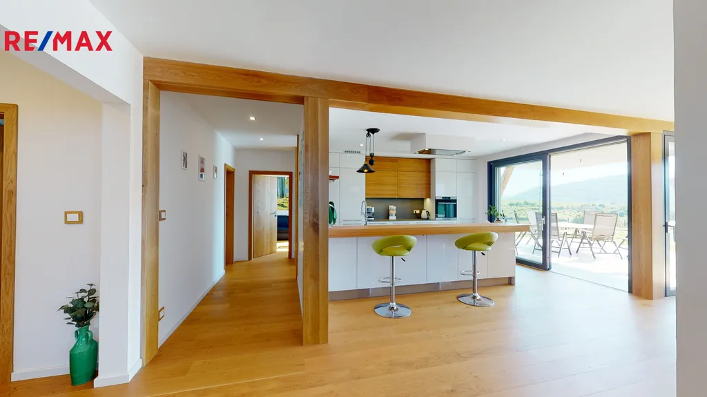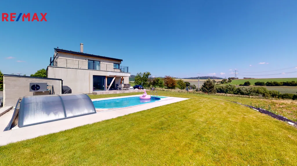 Dům byl zkolaudován v roce 2019 a je zhotoven ve vysokém nadstandardu, zahrnující kompletně vybavenou kuchyňskou linku s keramickou deskou ( spotřebiče AEG + Whirlpool ), v hodnotě 600 000,-Kč, dubové podlahy, schody, obklady, parapety, dveře, sanita značky Villeroy & Boch. V dětských pokojích, ložnici a šatně jsou instalované vestavěné skříně, v každém pokoji je vyvedena kabelová přípojka internetu, dále příprava na zabezpečovací zařízení, centrální vysavač a krb (zkolaudovaný komín). V domě je potřeba dokončit horní koupelnu, dále je realizována příprava ( kastlíky a elektrorozvody, ovládané přes tablet ) na vnější žaluzie, které stačí dokoupit a nainstalovat.