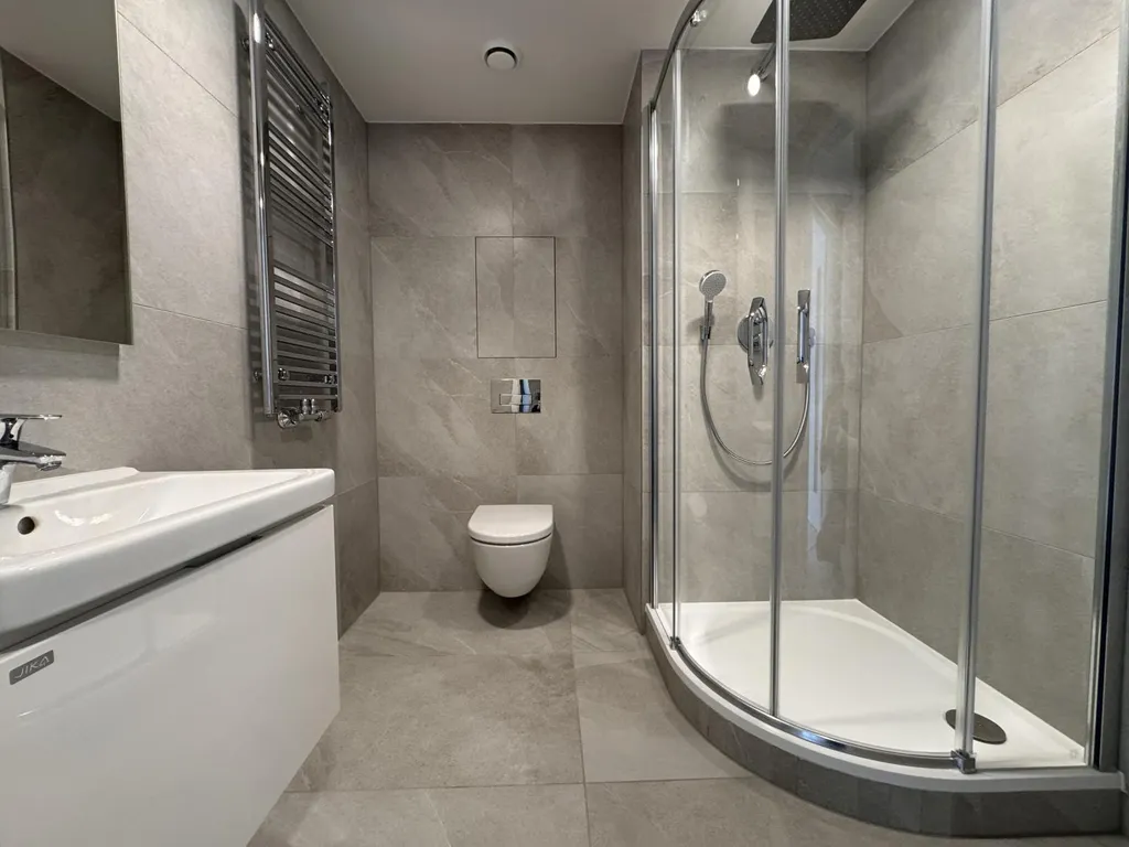 Nabízíme k pronájmu zcela nový byt 1kk (cca 40 m) s balkónem ve 1. NP moderní rezidence z roku 2025. Byt je dosud neobývaný, vybavení je nové kuchyň, sprcha, právě se instaluje skříň a bude dodána pračka. K bytu náleží sklep a k dispozici je i kočárkárna. Výhled do vnitrobloku, klimatizace.