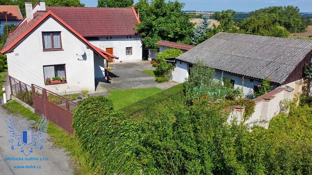 Exkluzivně vám nabízíme rodinný dům v části obce Radouň, obec Mělnické Vtelno s užitnou plochou obytné části cca 101 m2 stojící na pozemcích o celkové výměře 1299 m2. Velkou předností této nemovitosti je klidná zahrada s množstvím ovocných stromů, která díky své poloze na okraji obce nabízí možnost odpočinku bez přímého kontaktu se sousedy. V hlavní stavbě najdeme obytnou část skládající se ze tří pokojů, kuchyně, koupelny se sprchovým koutem, samostatné toalety, spíže, předsíně a dvou chodeb. Velkou výhodou je možnost vybudování dalších pokojů na půdě (cca 135 m2) či v hospodářské části domu (cca 53 m2). Pod domem najdeme také malý sklípek. Dům je napojen na veřejnou síť elektřiny a vodovodu, kanalizace svedena do jímky, topení v kamnech v jednotlivých pokojích, ohřev vody v el. bojleru. Na zpevněném dvoře u domu se nachází kromě hlavní stavby další dva vedlejší objekty sloužící pro uskladnění věcí či jako dílna s celkovou zastavěnou plochou cca 62 m2. Neváhejte a přijeďte se podívat na tuto nemovitost, jež by se mohla stát vaším novým domovem či chalupou sloužící k odpočinku. Radouň se nachází cca na půli cesty mezi Mělníkem a Mladou Boleslaví s autobusovým spojením do obou měst, v blízkosti nemovitosti nalezneme např. restauraci, dětské hřiště, samoobslužný obchod, poštu, pivovar či školu a školku. Pokud budete mít další dotazy či si budete chtít dům prohlédnout, tak se mi neváhejte ozvat. Majitel si vyhrazuje právo prodat nemovitost nejvýhodnější nabídce.