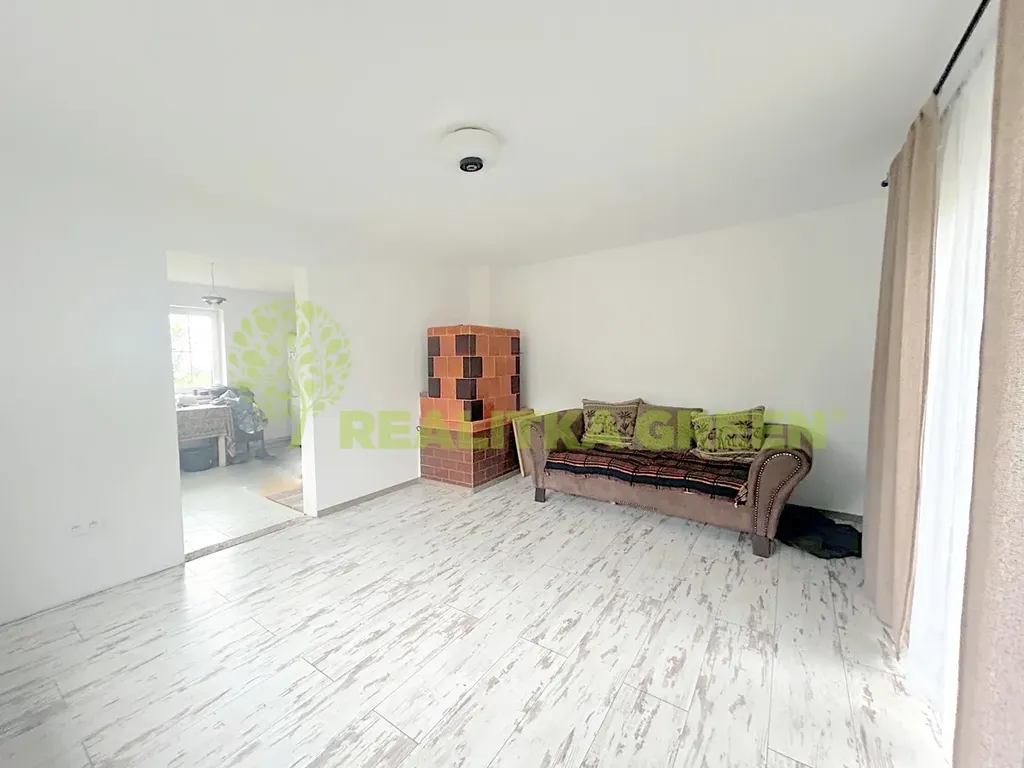 Dispozičně: v 1. NP se nachází prostorná vstupní chodba, prostorná kuchyň s jídelním koutem vybavená kachlovými kamny, obývací pokoj vybavený kachlovými kamny a francouzským oknem se vstupem na terasu, ložnice, která se pyšní novým zděným krbem. Z chodby je vstup do spíže, prádelny a koupelny, která je obložena novými obklady a je potřeba ji dokončit. Z koupelny je vstup do dílny, která je přístupná i ze dvora. 2. NP je v tuto chvíli v původním stavu neobyvatelné, které je možnost dobudování podkrovních pokojů, včetně vstupu na balkón.
