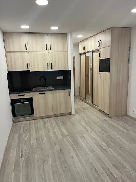 Nabízíme k pronájmu světlý a útulný byt s dispozicí 1+kk v 7. patře domu se 2 výtahy, ulice Jahodová, Praha 10 Záběhlice. V bytě proběhla kompletní rekonstrukce. Kuchyňská linka s troubou, sklokeramickou deskou, lednicí, mikrovlnou troubou a digestoří. Dostatek úložného prostoru ve vestavným skříních v chodbě bytu. V koupelně prostorný sprchový kout, toaleta je oddělená. Okna se žaluziemi jsou orientována na jih.