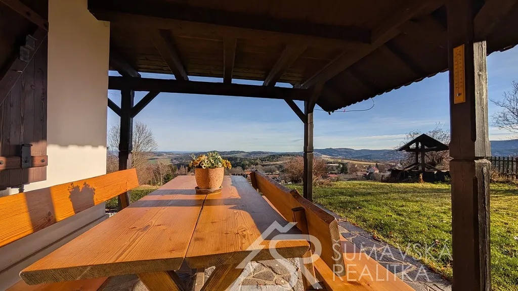 DŮM NA SMOTĚ U LESA S FANTASTICKÝM PANORAMATICKÝM VÝHLEDEM, OSTRUŽNO NA ŠUMAVĚ.