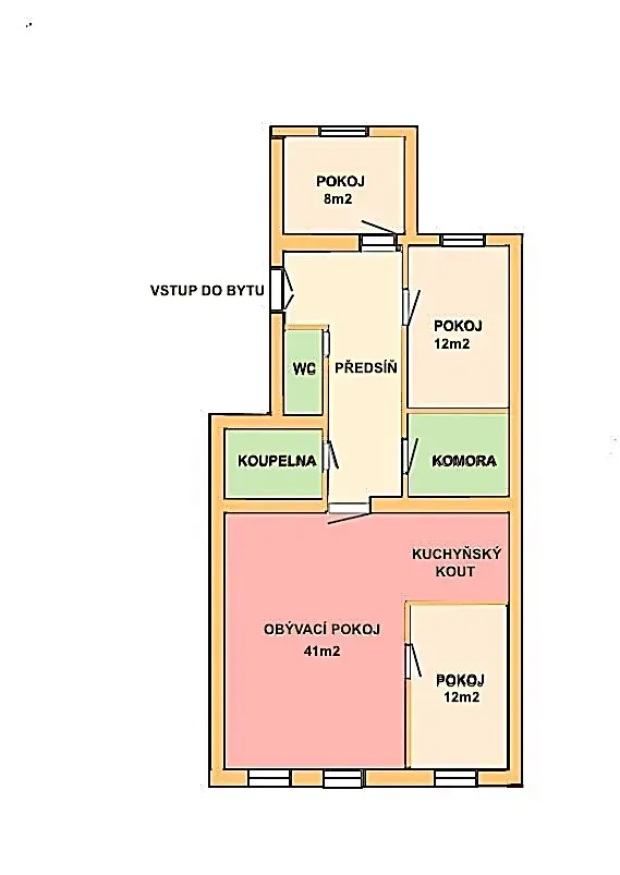 Vybavení bytu je uvedeno výše, nábytek do pokojů si dodá nájemce.
