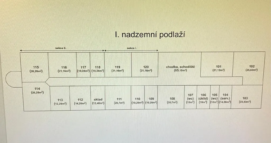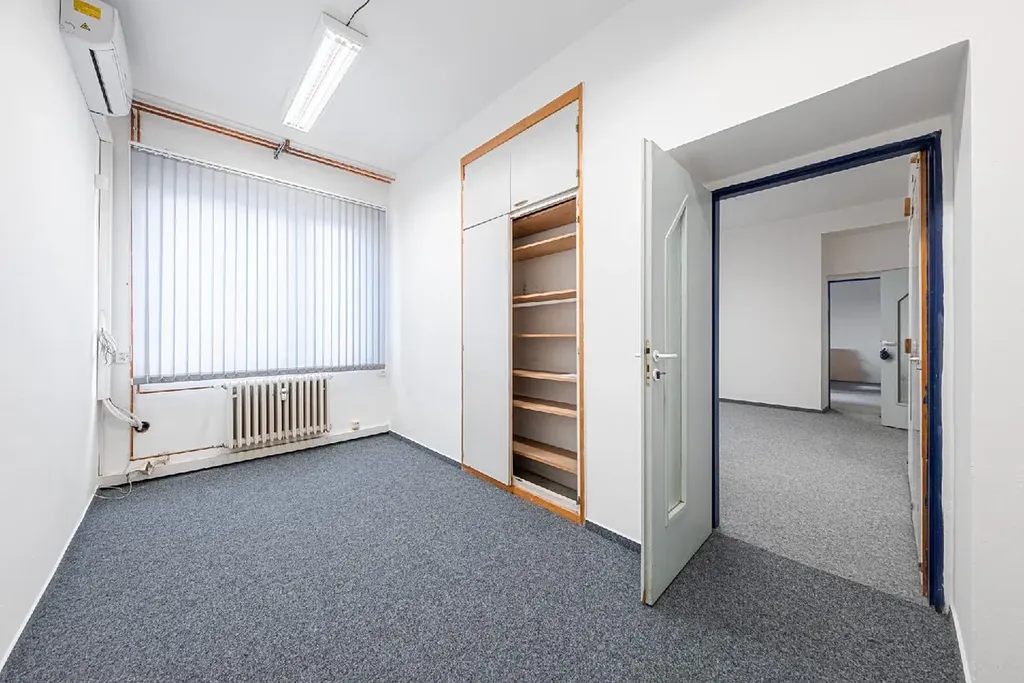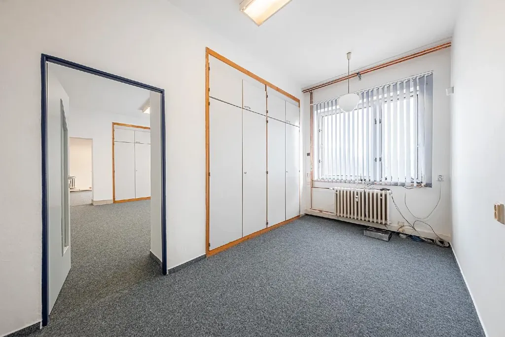 Jedná se o kanceláře v uceleném sektoru budovy v I. nadzemním podlaží. Vjezd do uzavřeného objektu automaticky ovládanou závorou. Celková výměra prostor činí 216m2, sektor lze rozdělit na dvě samostatné sekce případně si můžete dle potřeby pronajmout pouze určitý počet kanceláří. Nabízíme celkem 11 místností + sklad a archiv. K dispozici WC dámské a WC pánské, úklidová místnost. Prostory disponují dvěma vstupy, jeden samostatný do sekce I. hlavním vstupem do budovy a jeden do sekce II. postranním vchodem.