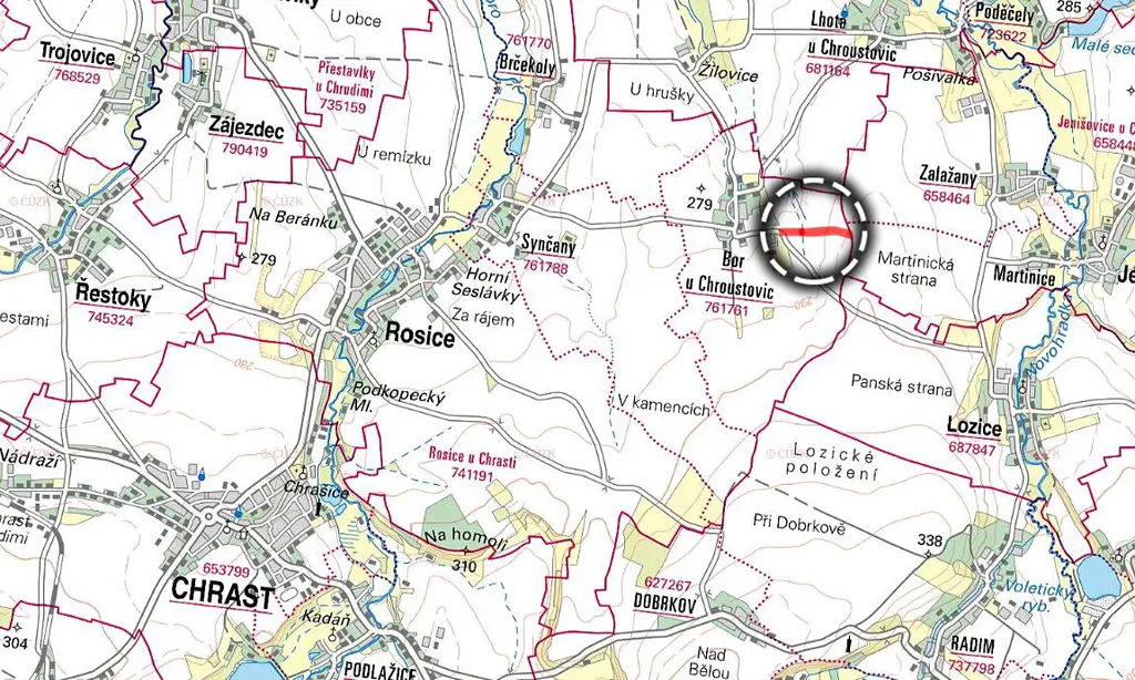 Nabízíme k prodeji pozemky ve 100% vlastnictví, nacházející se v katastrálním území Bor u Chroustovic, okres Chrudim. Pozemky jsou zapsány na listu vlastnictví č. 1071 a zahrnují tyto parcely: