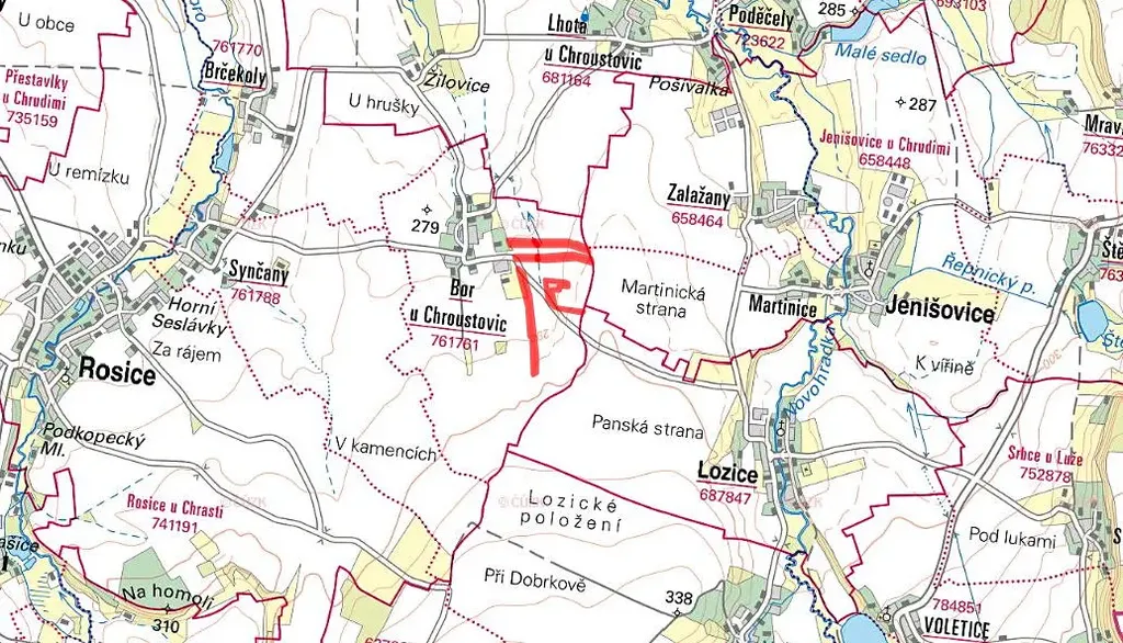 Nabízím ke koupi soubor zemědělských pozemků v katastrálním území Bor u Chroustovic v okrese Chrudim. Jedná se o prodej 100% vlastnictví. Pozemky jsou vedeny na katastru nemovitostí pod listem vlastnictví 1071 a parcelními čísly 319/11, 321/2, 334, 335, 336, 368, 422, 423 a 424 .