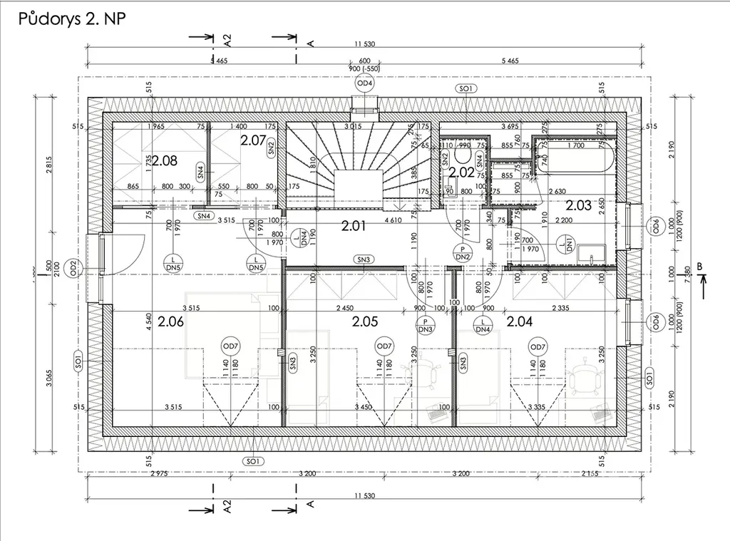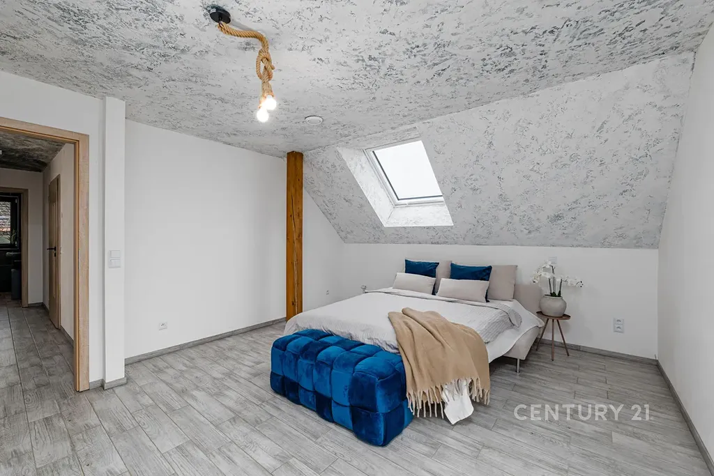 Dům je skvěle dispozičně řešen, v přízemí se nachází jeden samostatný pokoj, technické zázemí, koupelna a velmi vzdušný prostor obývací a jídelní části s kuchyňským koutem. Horní patro je členěno na dva samostatné pokoje, z nichž jeden má vlastní samostatnou šatnu. Koupelnu s vanou a se sprchovým koutem a samostatnou toaletu.