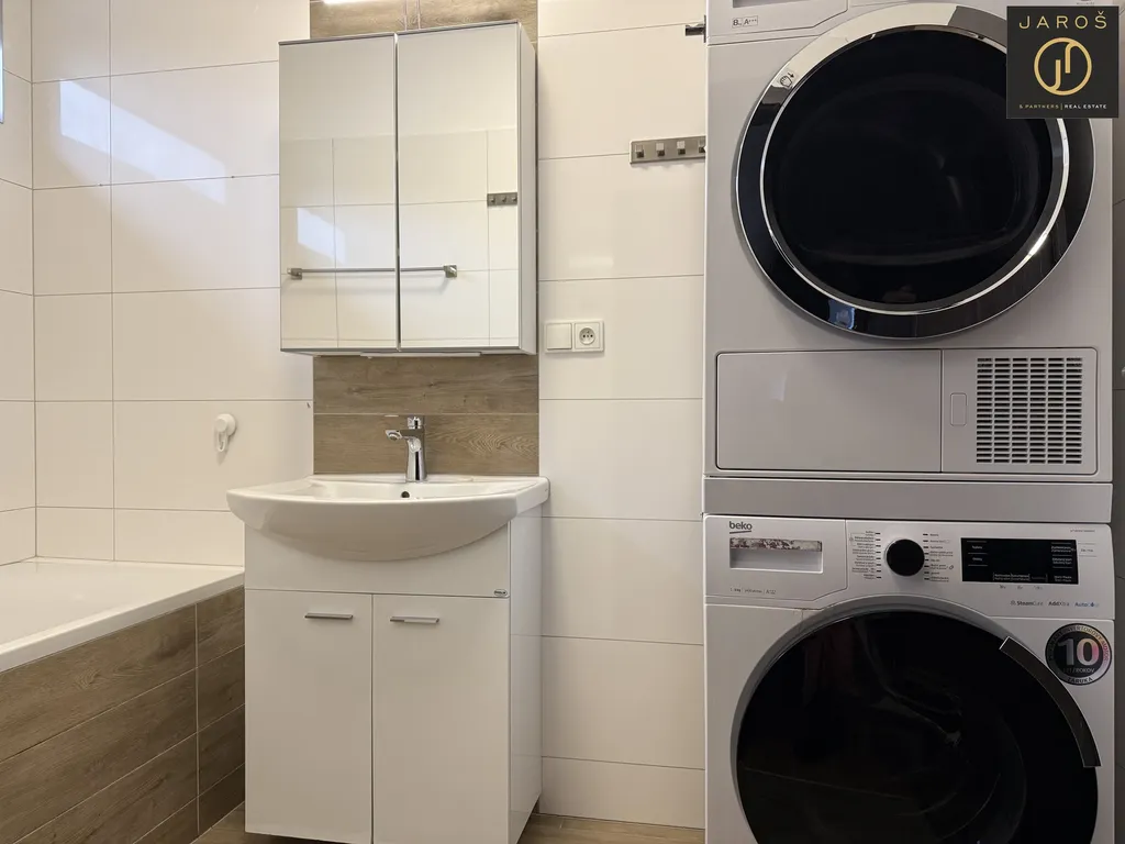 V domě se nachází koupelna s vanou, pračka se sušičkou a samostatná toaleta. Jedna z ložnic je vybavena velkou vestavěnou skříní a dětskou postýlkou, druhá ložnice je vybavena manželskou postelí, nočními stolky a televizí. V obývacím pokoji je sedací souprava, konferenční stolek, krb, televize, jídelní stůl. Z obývacího pokoje je vstup na terasu s příjemným posezením. Kuchyň je kompletně vybavená – k dispozici je elektrická trouba, indukční deska, lednice a myčka.