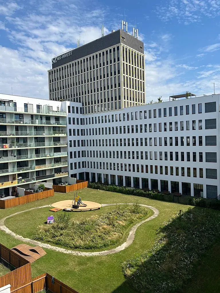 Nabízíme k pronájmu prostorný byt o velikosti 2+KK, nacházející se v 1. nadzemním podlaží obytného komplexu „Palác Trnitá“ na ulici Placzkova v Brně. Byt má výměru celkem 62,50 m2, z toho pokoj s kuchyňským koutem 30,20 m2, ložnice 13,80 m2, předsíň 7,20 m2, koupelna s WC 5,20 m2, komora 3 m2, sklep 3,10 m2 a má k dispozici zahrádku (terasu) o výměře 76,30 m2. K jeho vybavení patří moderní kuchyňská linka se spotřebiči, koupelna s vanou, pračka, vestavěné skříně v předsíni, regály v komoře, záclony, závěsy a jinak je nezařízený. Součástí pronájmu je parkovací stání v suterénu domu. Byt má instalován optický internet a je situován do vnitrobloku s oddechovou zónou, určenou pouze pro rezidenty, což zaručuje klidné bydlení uprostřed města. Energetická náročnost budovy je hodnocena ve třídě „B“, jako velmi úsporná. Nájemné činí 22.990,- Kč a záloha na energie a služby pak 5.000,- Kč měsíčně. Nastěhování je možné od 1.2.2026.