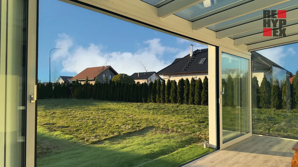 Dominantou domu je luxusní zateplená hliníková zimní zahrada s trojskly o velikosti 25 m². Jde o celoroční obytnou místnost s krásným výhledem do zahrady, ideální pro relax, čtení, jógu, odpočinek i posezení s rodinou. Díky kvalitě použitých materiálů nabízí tento prostor absolutní komfort v jakémkoliv ročním období.
