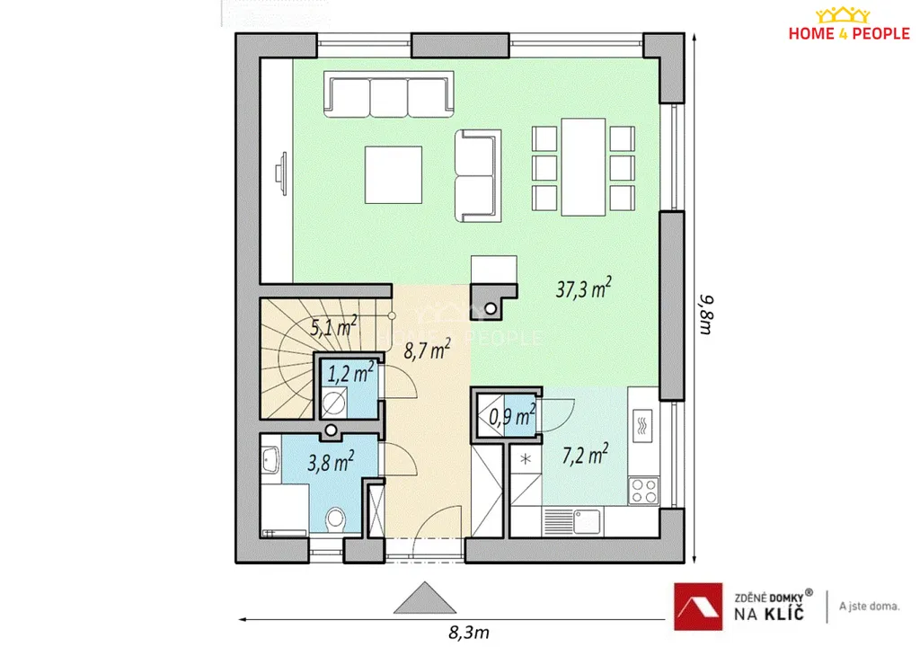 Vše zahrnuto: Uvedená cena je konečná a obsahuje kompletní stavbu na klíč, základovou desku, projekt a DPH.