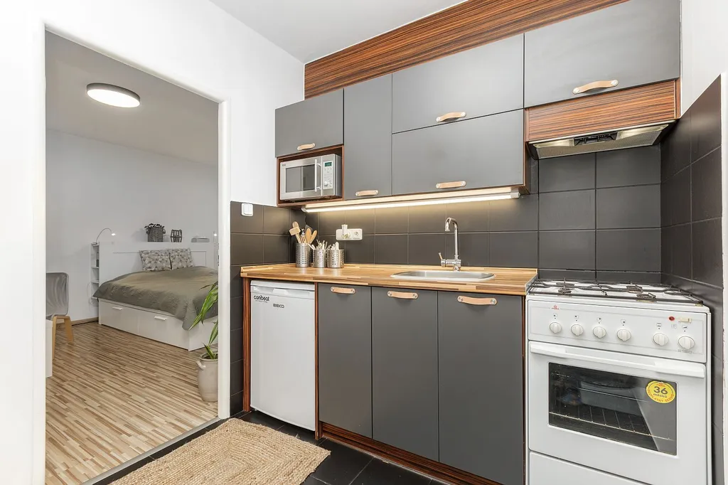 Byt v minulosti prošel téměř kompletní rekonstrukcí. Pronajímá se jako částečně zařízený (pračka se sušičkou, lednička, šatní skříně, postel s úložným prostorem, komoda, poličky, konferenční stolek, křesla).