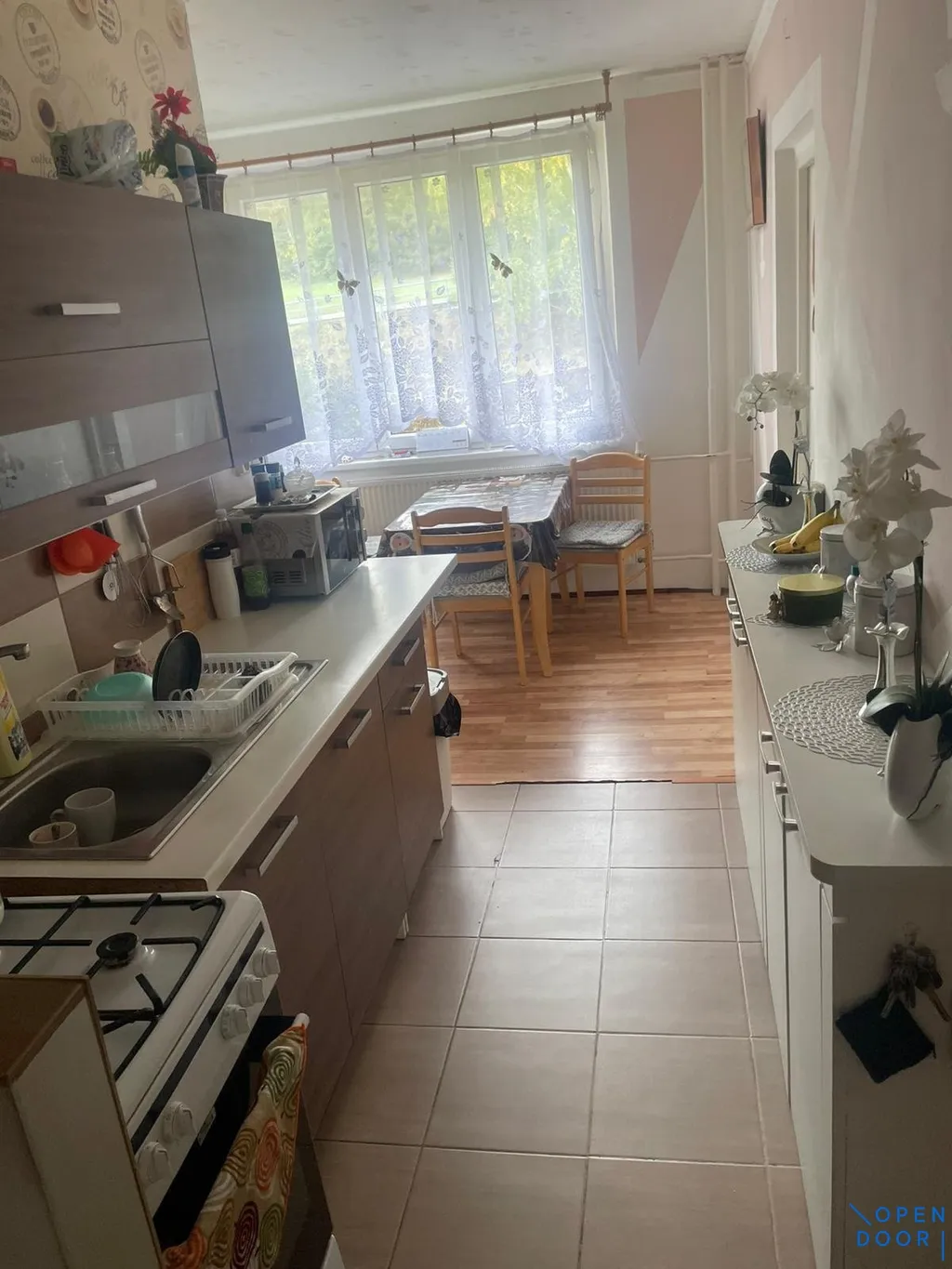 Kuchyň je vybavena linkou a plynovým sporákem a nabízí dostatek prostoru pro umístění jídelního stolu.