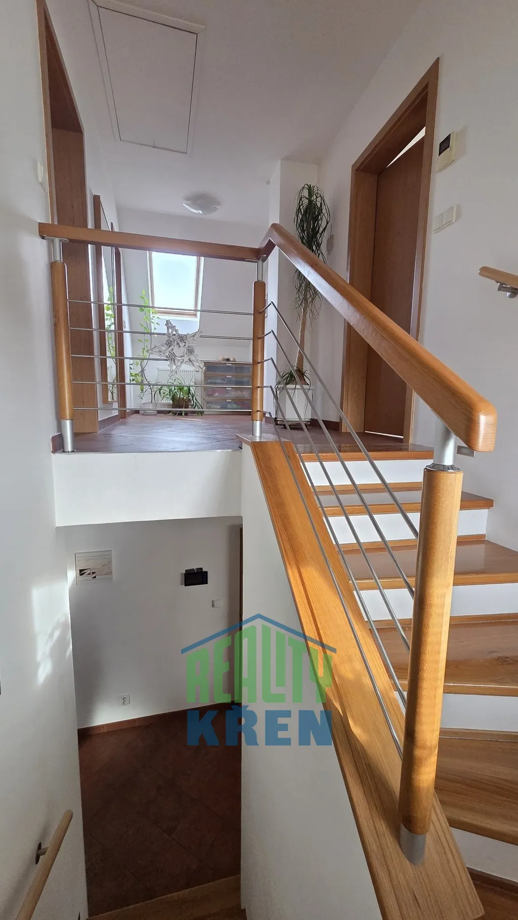 Prodej RD 4+1, 151 m2, s terasou a garáží, ulice V Topolech, Unhošť. Vstupní předsíň s vestavěnými skříněmi, obývací pokoj s krbovými kamny (vložka a komín Schidl) a vstupem na terasu a zahradu, kuchyně s vestavěnými spotřebiči, spíž, koupelna se sprchovým koutem a WC, schodiště do patra, kde se nachází 3x ložnice, koupelna se sprchovým koutem, vanou a WC (elektrické podlahové vytápění). V přízemí teplovodní podlahové vytápění.