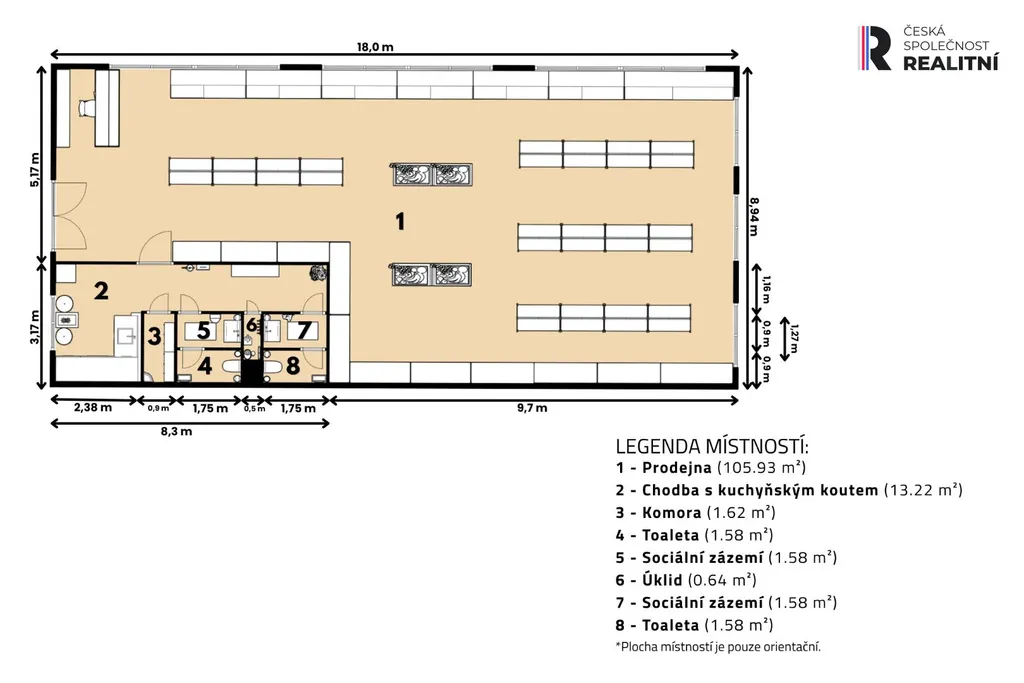– dobře viditelné místo pro prodej techniky, hobby sortimentu nebo vybavení