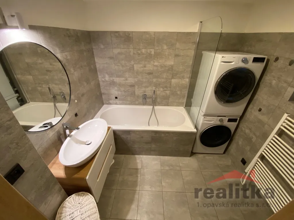 předsíň, obývací pokoj s kuchyňským koutem, pracovna, koupelna s vanou a WC.