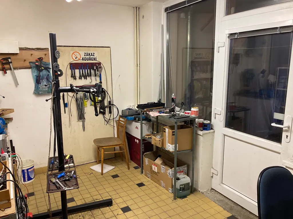 Do výrobně skladovacích prostor je samostatný vstup. Vjezd vozidel je možný přímo do skladového prostoru. V současné době fungoval prostor jako opravna jízdních kol.