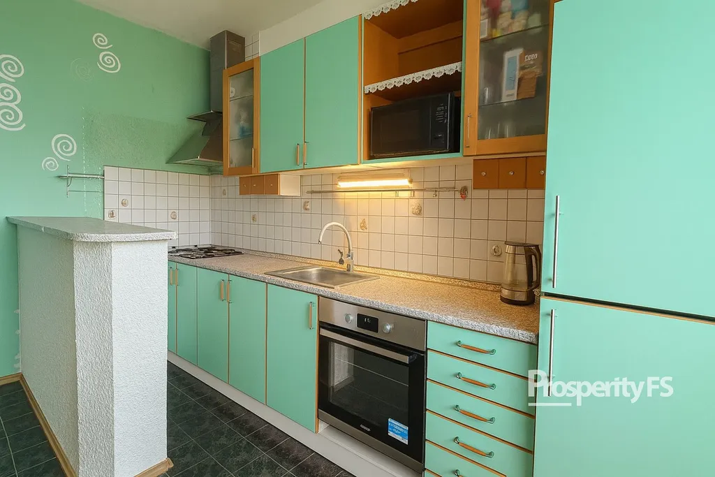 Byt má praktické uspořádání – kuchyň, obývací pokoj, ložnici, dětský pokoj, zděnou koupelnu a samostatné WC. Prostorná chodba poskytuje dostatek úložného prostoru a zasklená lodžie s výhledem na dětské hřiště dodává bytu příjemnou atmosféru i možnost venkovního posezení. Samozřejmostí je také sklepní kóje.