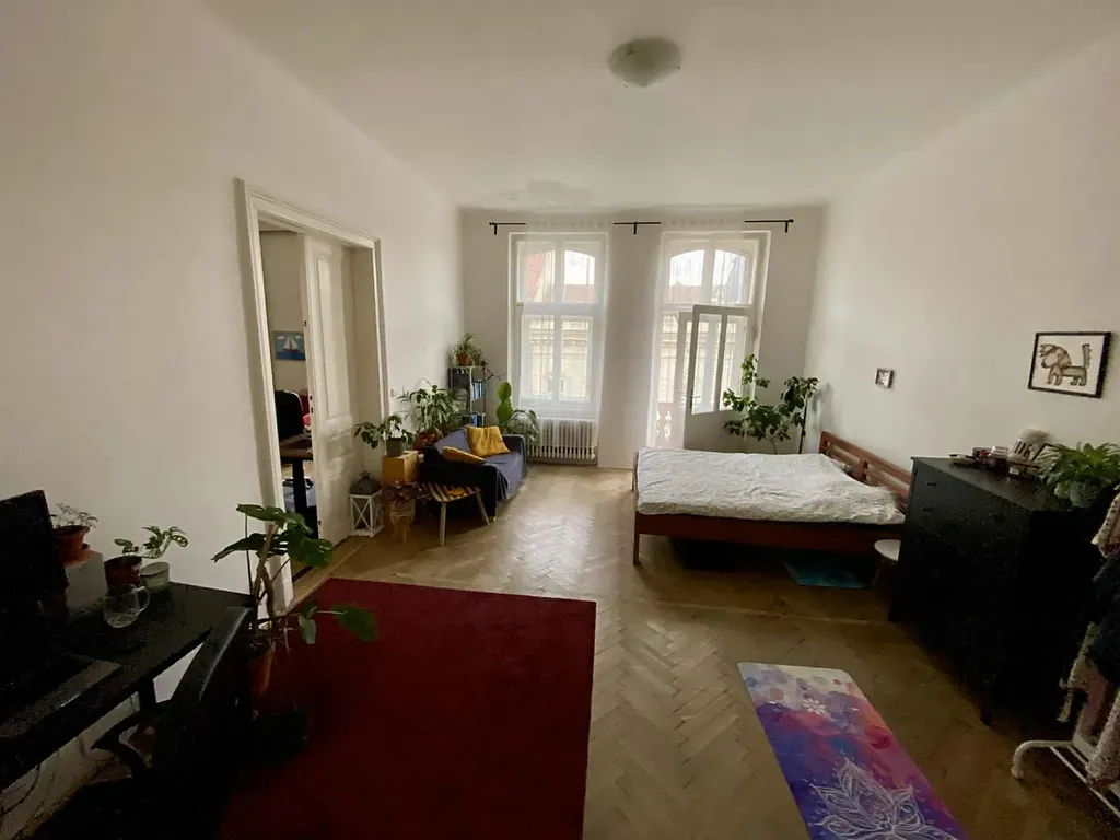 Pronájem nadstandardně prostorného bytu po rekonstrukci 3+1 o ploše 115 m2 v historickém domě u centra Brna, ulice Jana Uhra v blízkosti Obilního trhu. Secesní dům s bohatou fasádou se štukami, byt s vysokými stropy a velkými dvoukřídlými dveřmi a velkými kastlovými okny.