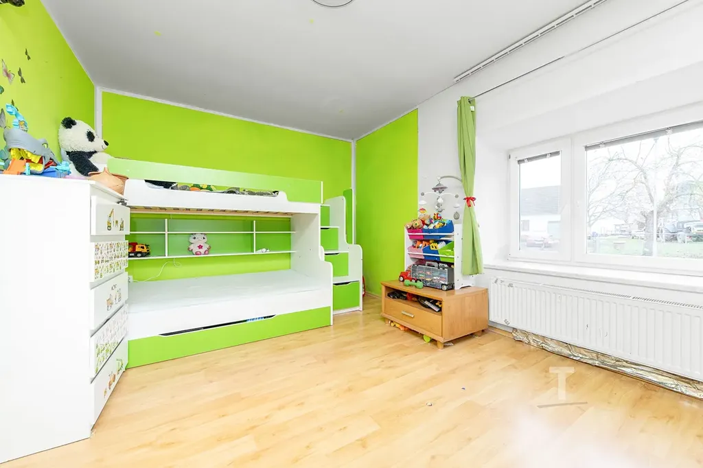 Dispozice domu je následující: vstupní chodba (10 m2), koupelna (4,2 m2), samostatné WC (2,7 m2), dětský pokoj (14,7 m2), ložnice (13,6 m2), obývací pokoj (17,4 m2) a navazující kuchyně (11 m2). Nad celým domem je půda, která je přístupná hned ze vstupní chodby.