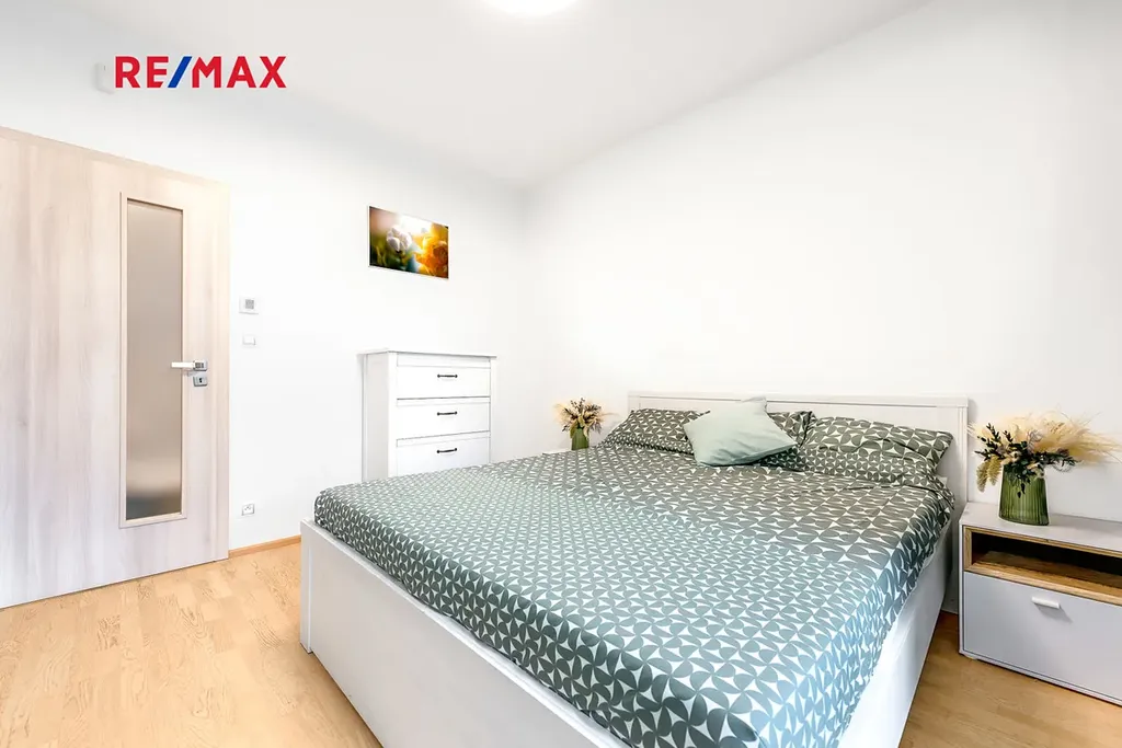 Součástí ceny je prostorný sklep (5,5 m²) v 1. PP a nadstandardně široké parkovací stání (šířka 3,35 m oproti běžným 2,35 m). Byt se nabízí zařízený.