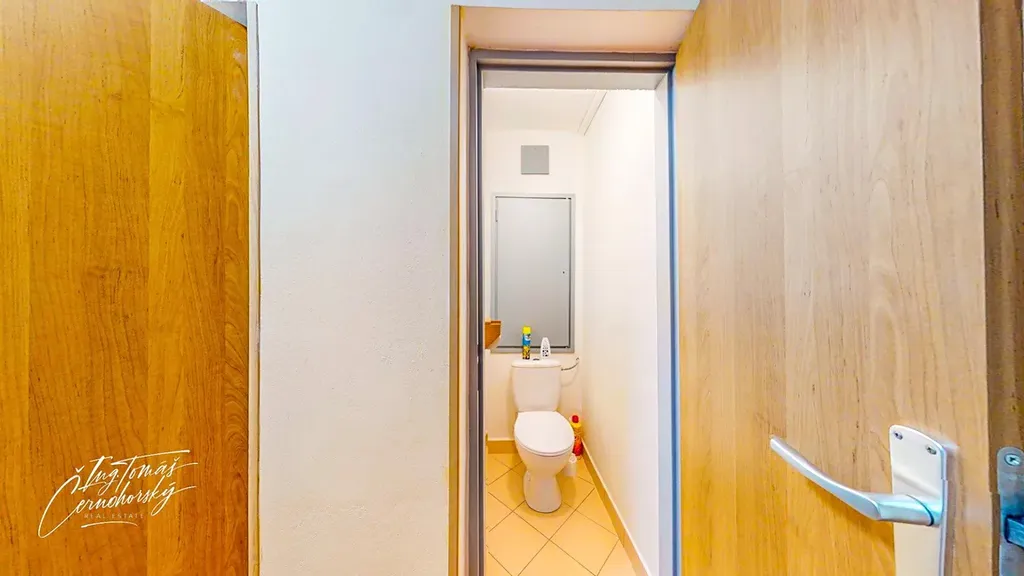 Součástí bytu je koupelna, samostatné WC, sklepní kóje a také další samostatná místnost, kterou lze využít jako šatnu, pracovnu či domácí kancelář.