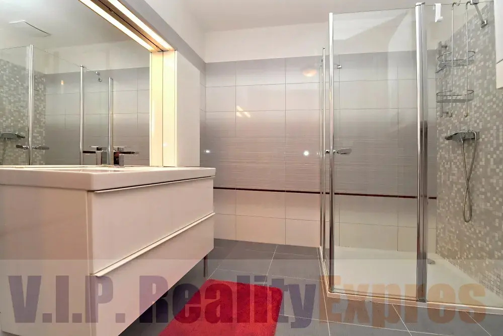 Naprosto výjimečný slunný byt 3+kk o ploše 70 m² v 2.NP s prostorným balkonem o velikosti 9 m² situovaný do velmi tiché, klidné vilové části. Byt se skládá ze vstupní chodby s vestavěnou skříní na obuv, kabáty a úklidové prostředky. Na stěnách v chodbách se nachází vkusné tapety. Prostorný obývací pokoj spojený s kuchyňským koutem disponuje velkým francouzským oknem přes, které je vstup na balkon s orientací na západní stranu. V kuchyňském koutě je krásná kuchyňská linka na míru s barem. Linka obsahuje vestavěné spotřebiče značky Electrolux a AEG. Jedná se o indukční varnou desku, elektrickou troubu a myčku na nádobí. V obývacím pokoji je místo pro jídelní stůl i rohovou sedací soupravu a TV. Ložnice 1 je rovněž s přístupem na balkon a v každém pokoji se nachází vestavěný skříň. Ložnice 2 má dostatek místa pro pracovní stůl, postele a skříňky a mimo jiné i velké okno do zahrady. Prostorná moderní koupelna je s rohovým sprchovým koutem, umyvadlem, a místem pro pračku. WC je v samostatné místnosti. V celém bytě jsou použity kvalitní podlahy a dlažba. Na všech oknech jsou žaluzie. Balkon má elektronickou markýzu. Vytápění a ohřev vody je zajištěno vlastním plynovým kotlem umístěným v bytě.