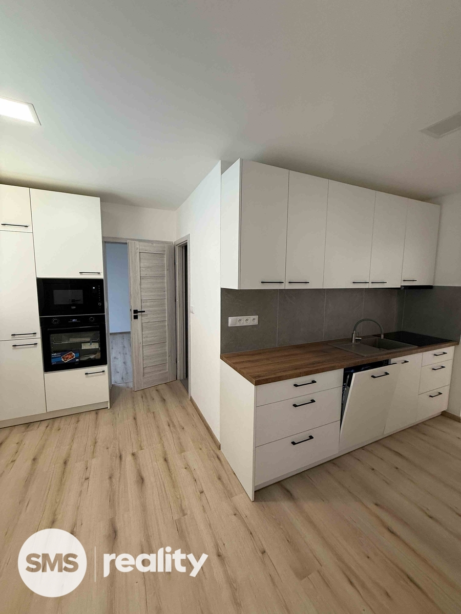 Součástí vybavení je vestavěná trouba, mikrovlnná trouba, indukční deska, lednice s mrazákem a myčka, takže se můžete ihned komfortně zabydlet.