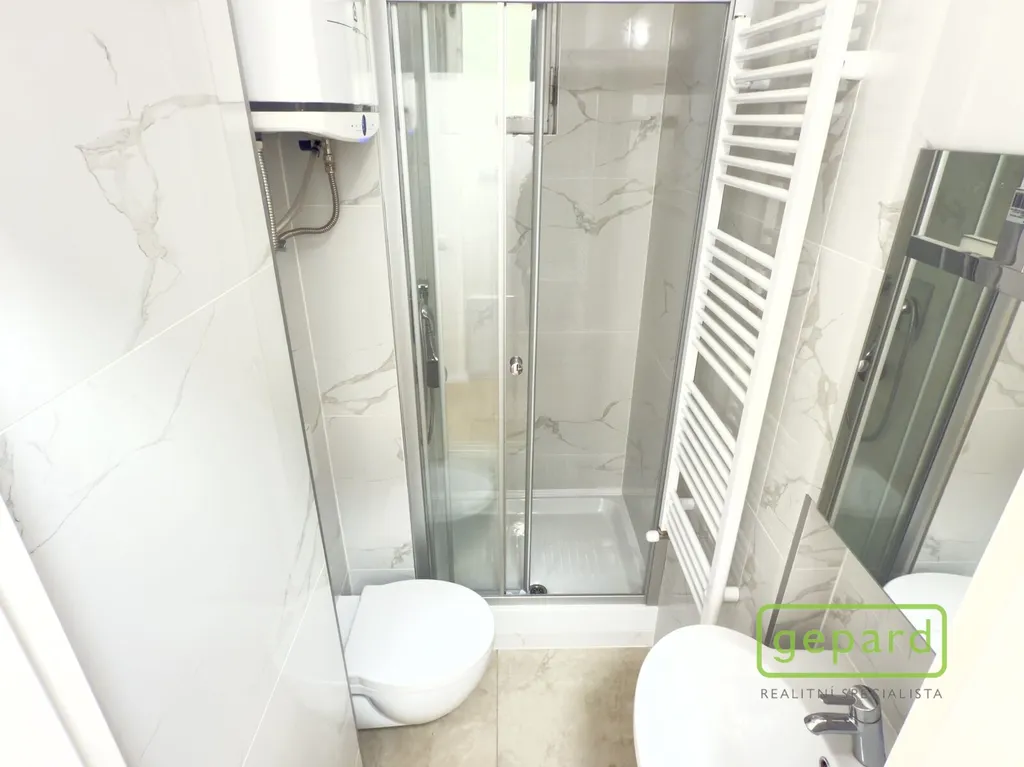 Interiér bytu je po nedávné kompletní rekonstrukci. K dispozici jsou nové podlahy, moderní kuchyňská linka na míru se spotřebiči (varná deska, trouba, digestoř, myčka a pračka) a koupelna se sprchovým koutem v elegantním provedení. Komfortní bydlení doplňuje plynový kotel, který zajišťuje vytápění. Díky vysokým stropům působí byt velmi příjemně, vzdušně a nechybí ani dostatek světla.