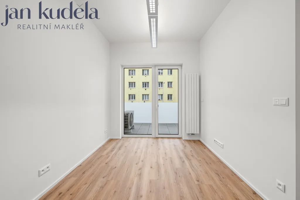 Při vstupu do bytu se nacházíte v chodbě, ze které je samostatný vstup na toaletu a do koupelny s prostorem pro pračku. Pračka bude dodána po dohodě s budoucím nájemcem. Z chodby dále vstupujete do obývacího pokoje s kuchyňským koutem, ze kterého je přímý vstup do ložnice. Jak obývací pokoj, tak ložnice mají přímý vstup na terasu o ploše 18,8 m², která nabízí příjemný prostor pro relaxaci i posezení.