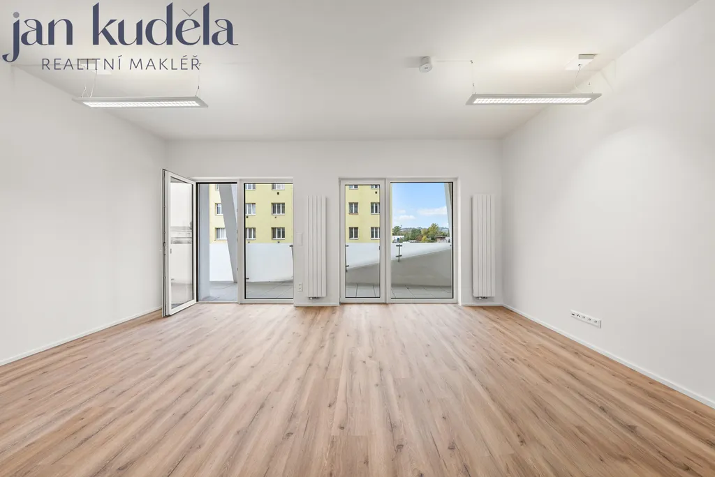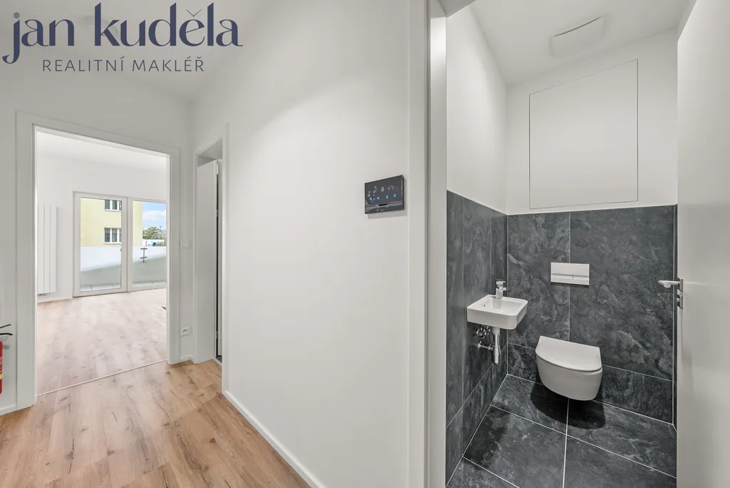 Nabízíme k pronájmu moderní byt o dispozici 2+kk s velkorysou terasou o velikosti 18,8 m², který se nachází v nové rezidenční zástavbě na ulici Komárovská v rychle se rozvíjející lokalitě Brno – jih.