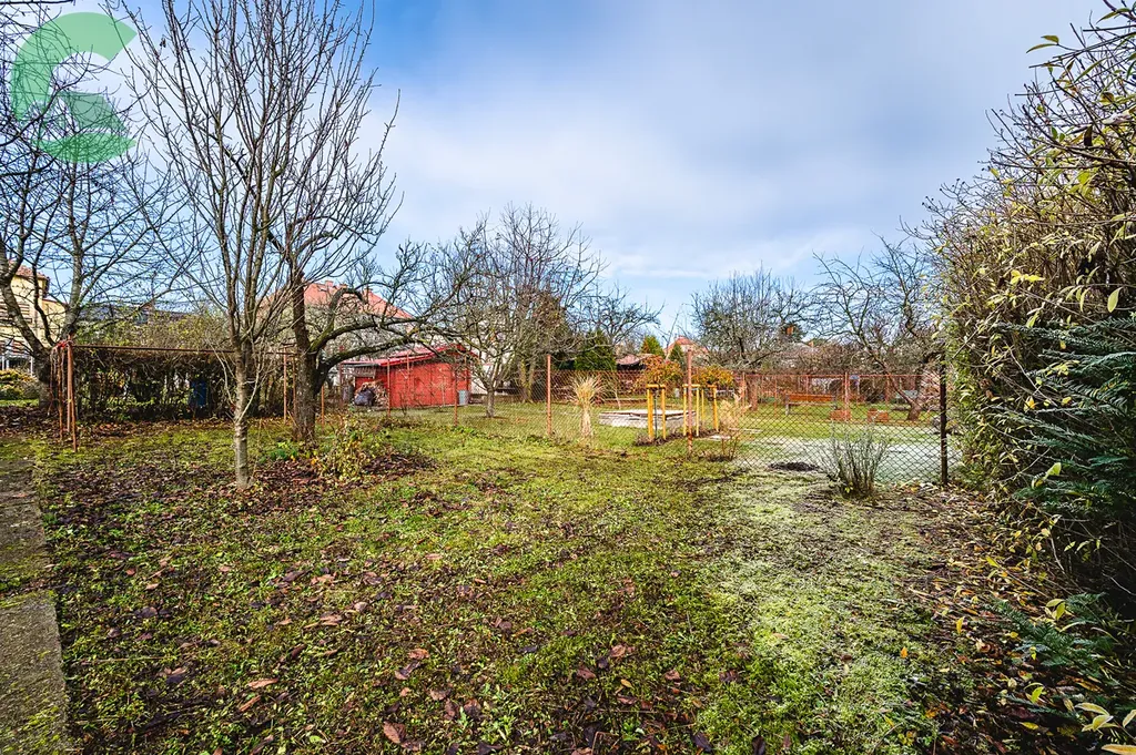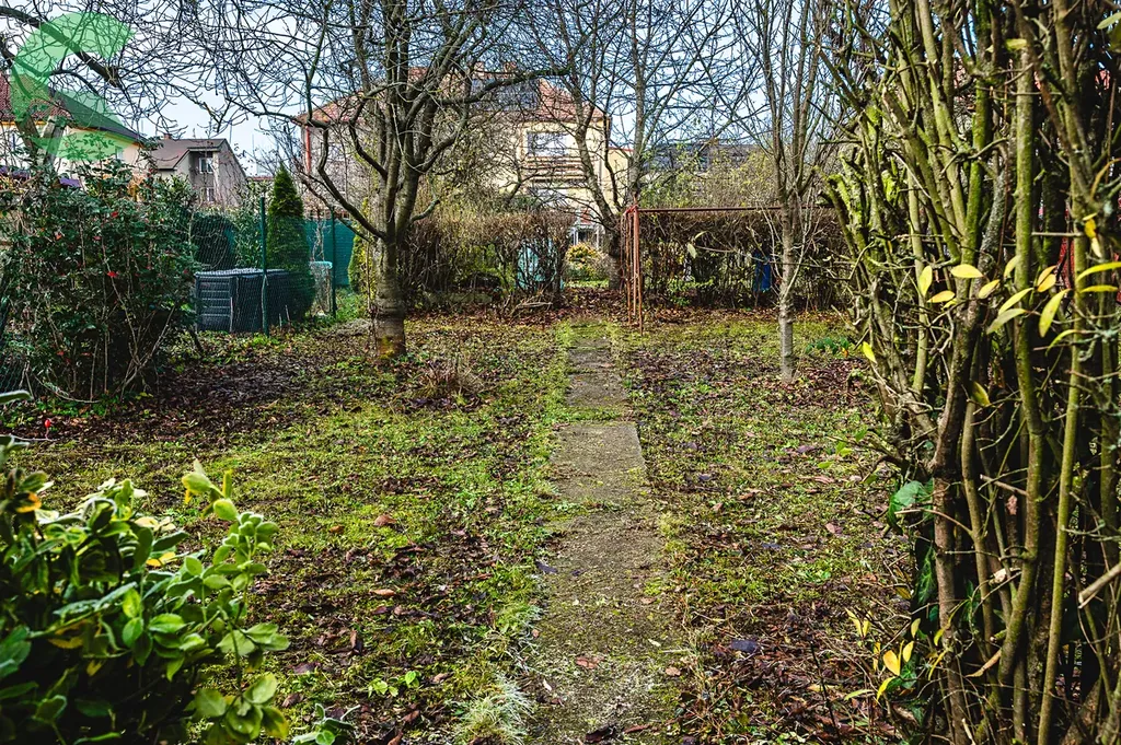 Celková výměra pozemku činí 455 m², zastavěná plocha 106 m². Zahrada je příjemná, dostatečně velká a orientovaná do klidného vnitrobloku – s několika stromy, keři a velmi příjemným soukromím. Parkování je možné na vlastním pozemku pro 2 osobní vozy + další možnost v garáži (vhodná pro menší vůz, motorku, kola či sklad).