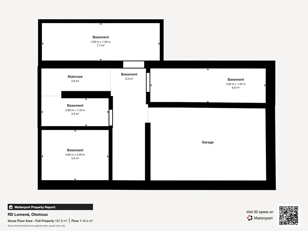 - tři samostatné místnosti, garáž, centrální prostor se vstupem do zahrady a umístěným kondenzačním plynovým kotlem. Prostor vhodný jako sklad, dílna, technické či hobby zázemí.