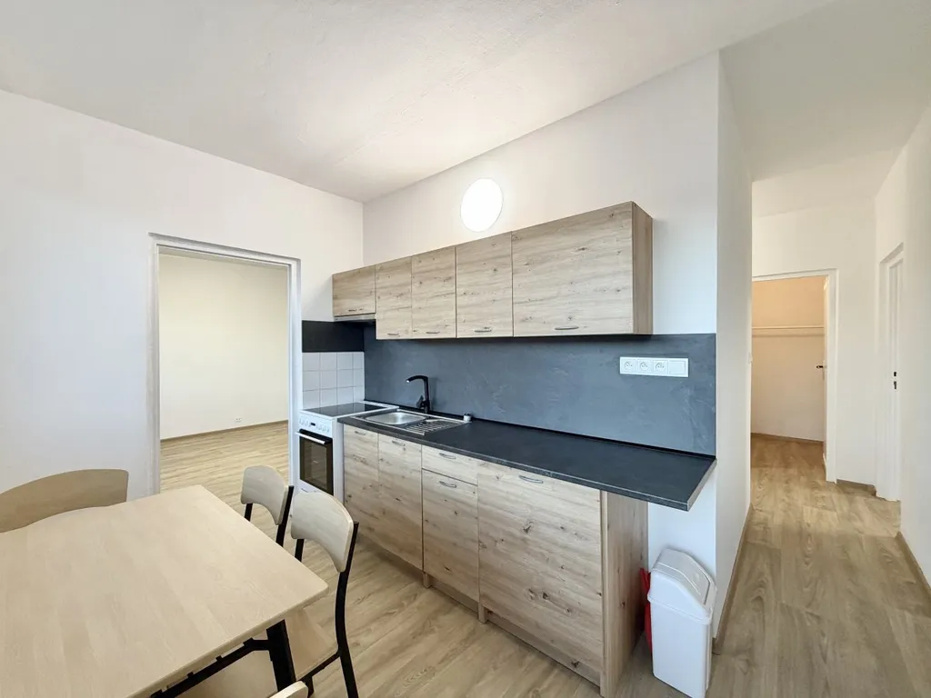 Byt se nabízí částečně vybavený. Kuchyně disponuje elektrickou troubou, sporákem, digestoří, jídelním stolem a židlemi. Obývací část, ložnice a druhý pokoj zůstávají nezařazeny. V koupelně je sprchový kout, umyvadlo a topný žebříček. Toaleta je umístěna samostatně.