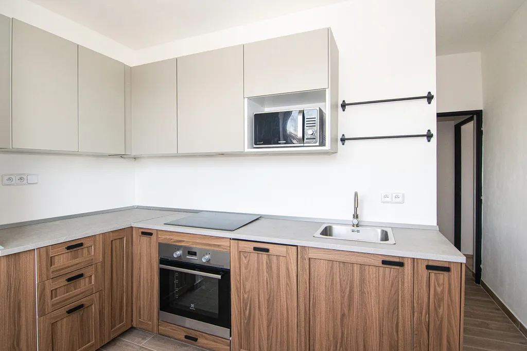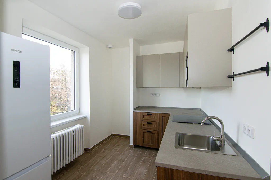 V kuchyni byla instalována nová moderní kuchyňská linka s indukční varnou deskou, troubou na pečení, mikrovlnnou troubou a přípravou na myčku. Je zde volně stojící lednice s mrazákem. Do kuchyně se dá umístit menší jídelní stůl.