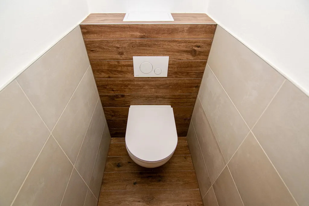 Koupelna je vybavena proskleným sprchovým koutem. Toaleta je samostatná.