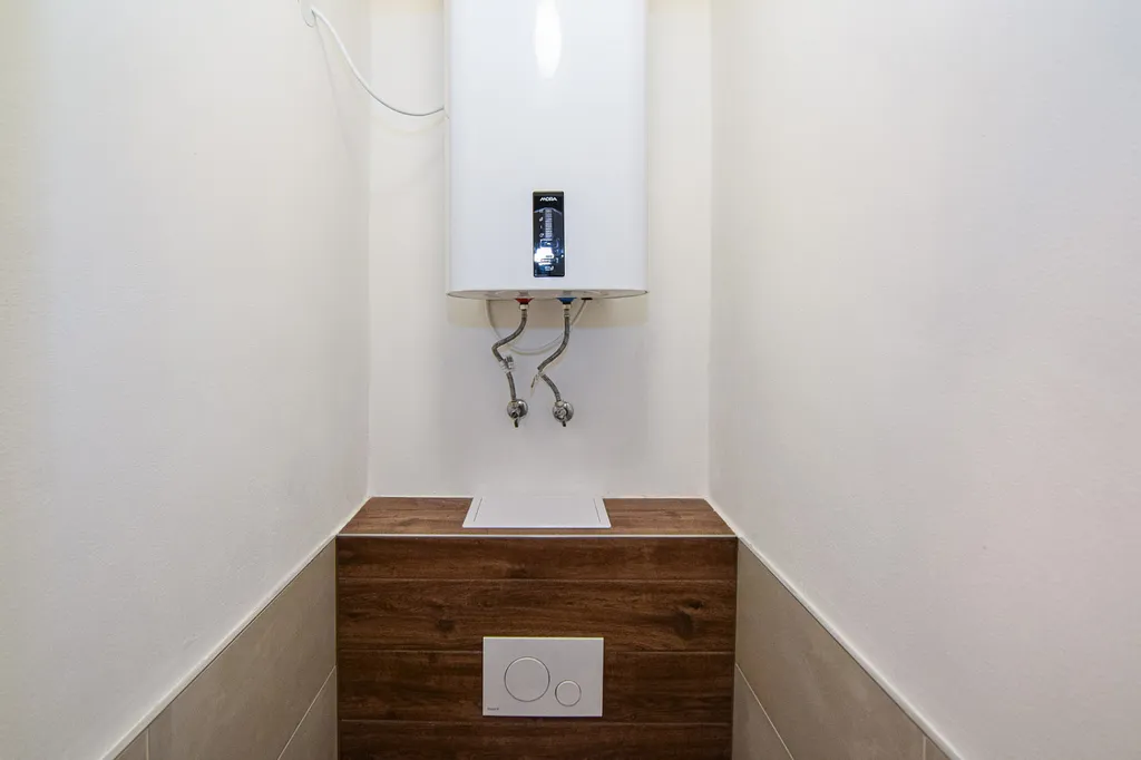 Vytápění je dálkové ústřední s vlastní plynovou kotelnou v domě, která výrazně snižuje náklady na vytápění. Ohřev vody zajišťuje elektrický bojler.