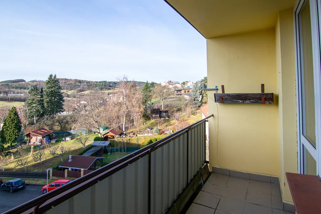 Byt je světlý, vzdušný a díky umístění v posledním patře má krásné výhledy do širokého okolí.