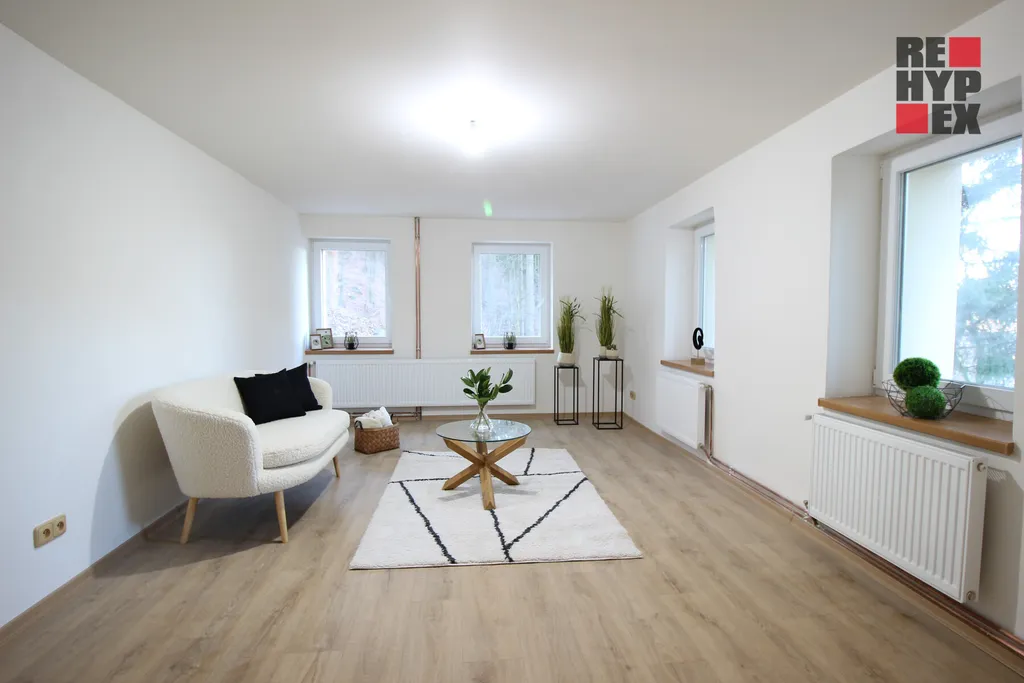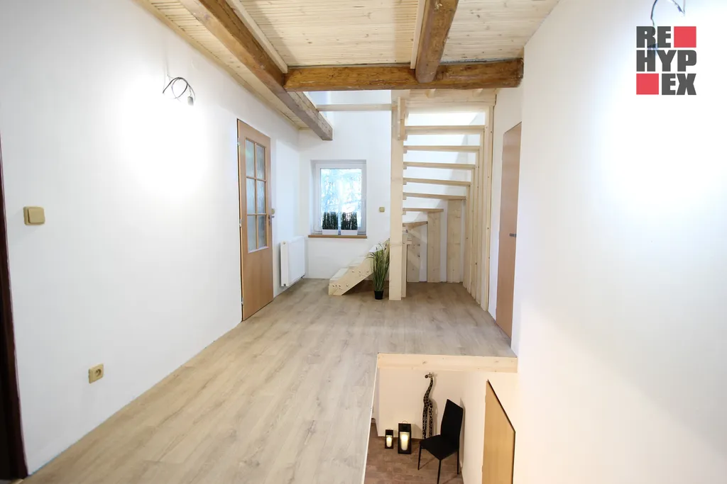 Dispozice domu je 4+kk. V přízemí se nachází komora (spíž), samostatné WC, prostorná kuchyně, předsíň a sklep s klenutým stropem z kamene. V prvním patře naleznete útulný obývací pokoj a pracovnu (obě místnosti s přípravou na kamna), dále pak prostornou koupelnu s luxusní rohovou vanou, bojlerem, závěsným WC Geberit, přípravou pro pračku a myčku. Třešničkou na dortu je rozsáhlý podkrovní prostor, který lze buď ponechat v současné podobě nebo jednoduše přepažit na několik menších pokojů dle přání majitele.