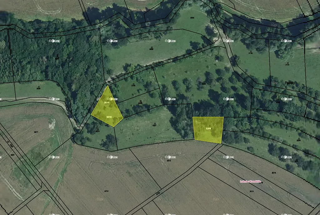 Pozemky patří pod LV: 252, parcelní číslo: 3001, 3206, 3215 o podílu 1/1.