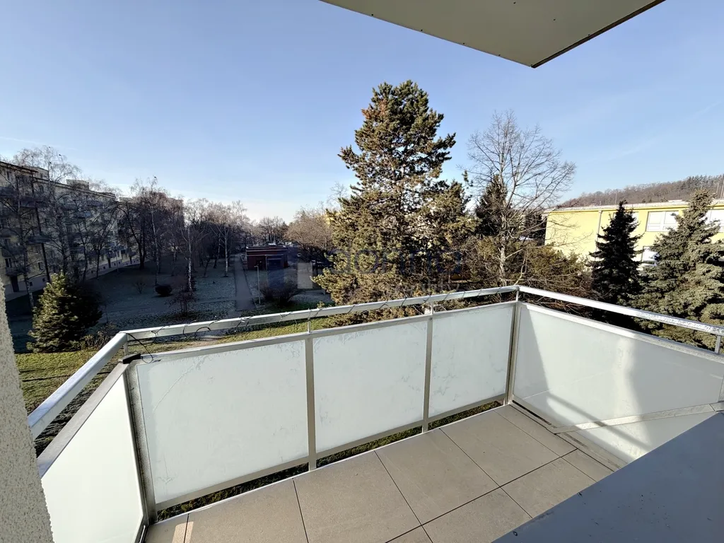 Okna s výhledem do zeleně, klidná lokalita. K bytu náleží sklep 4m2.