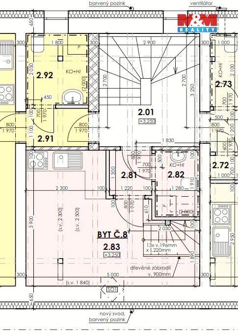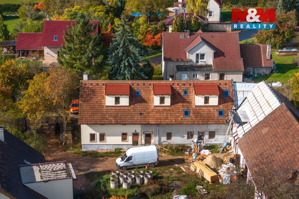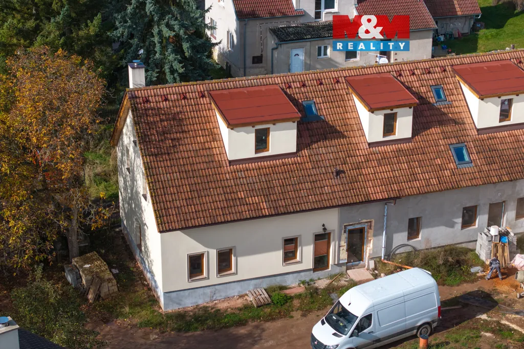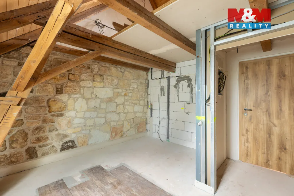 Tento podkrovní mezonetový byt se nachází ve 2. a 3.NP rekonstruovaného domu, ve kterém je více bytů venkovského stylu. Spodní podlaží bytu má 19 m2 a je tu vstupní chodba, obývací pokoj s kuchyňským koutem, WC s umyvadlem a místem pro pračku, je zde jedno střešní okno. V podkroví o velikosti 18,5 m2 je pak otevřená ložnice, ve které bude volně stojící vana s krásným výhledem vikýřem do přírody, dále umyvadlo a komora. Orientace bytu je východ a západ. Dům je zateplen, na střeše jsou nové betonové tašky, PENB typu B. Nízké náklady na energie a vodu. Topení a teplá voda je tepelným čerpadlem, vytápění v podlaze. Voda obecní vodovod, splachování dešťovka. Okna plastová, trojsklo. V domě je bezdrátový internet a společná anténa. Součástí kupní ceny jsou: podlahy, zárubně, dveře, koupelna vč. obkladů, sanity. Ve dvoře objektu bude park s lavičkami a herními prvky pro děti, dále wellness. Parkování zajištěno, možnost i dokoupení garáže. Byt číslo 8.