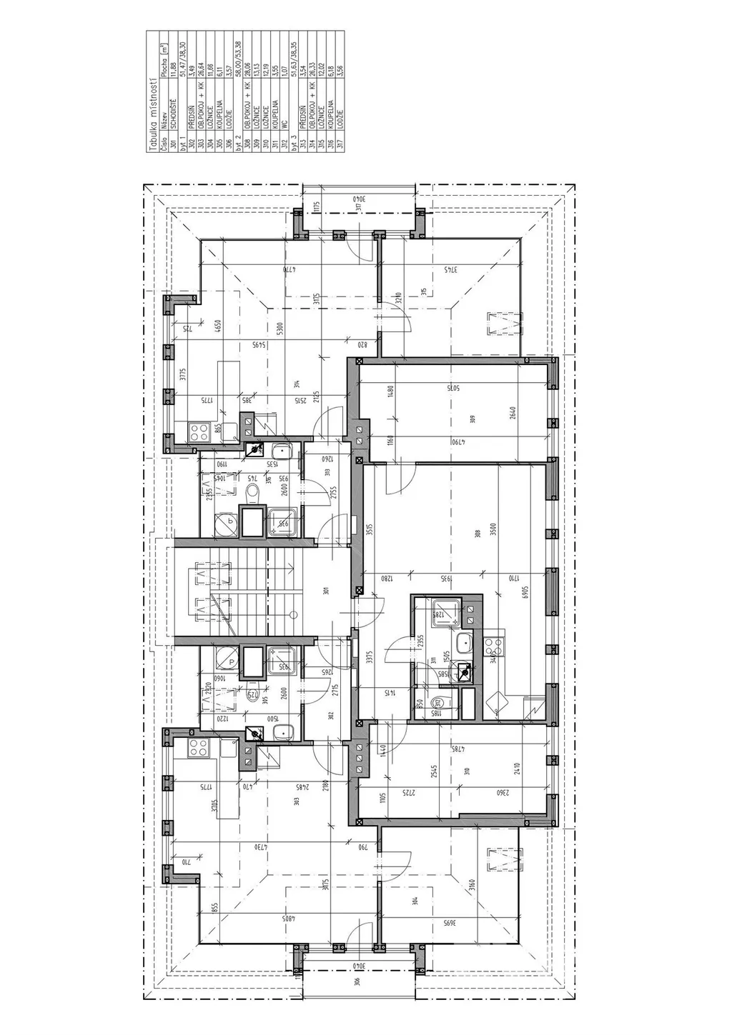 Byt o dispozici 3+kk a výměře 58 m² se nachází ve zcela zrekonstruovaném cihlovém domě se třemi nadzemními podlažími. Tento byt se nachází v podkroví domu. Projekt je navržen s důrazem na kvalitu, moderní design a energetickou efektivitu (třída PENB B).