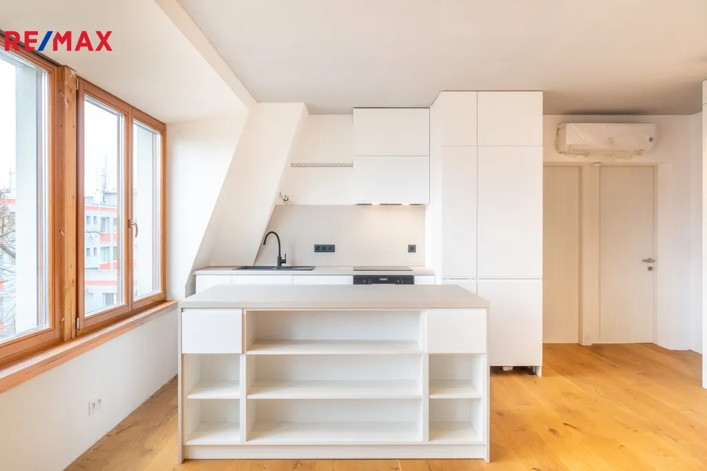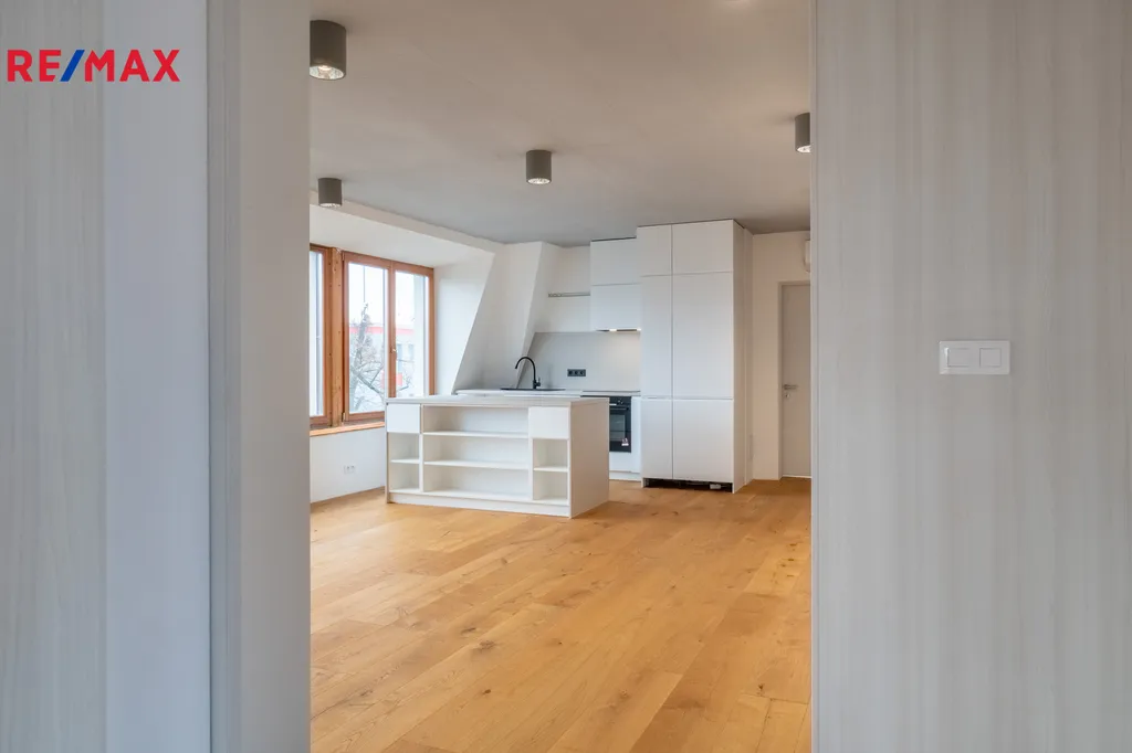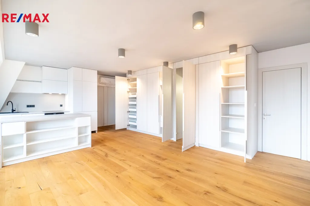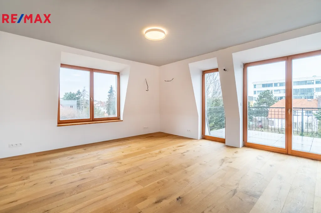 Byt o podlahové ploše 136 m² doplňuje balkon o velikosti 18 m². Jedná se o zcela nový prostor, který dosud nikdo neobýval a který je nyní ve finální fázi dokončování. Interiér je z větší části hotový – podlahy, dveře, povrchy i většina vybavení jsou již nainstalované.