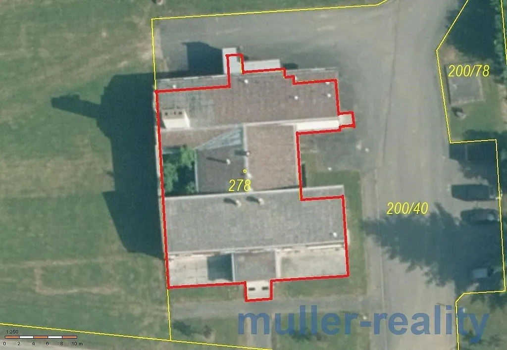 Popis budovy: nabízená nemovitost se nachází v centrální části obce na velmi atraktivním obchodním místě v blízkosti zdravotního střediska. Příjezd a přístup k budově je po zpevněné asfaltové komunikaci. Jedná se o stavbu občanské vybavenosti – bývalý kulturní dům s kuchyní. Stavba realizovaná před rokem 1990 však nebyla dokončena, ani nikdy nesloužila svému účelu. I přes své dlouhodobé opuštění je však v dobrém technickém stavu bez známek devastace, či vandalismu. V nedávné době byla i pronajata k drobné montážní činnosti. Jedná se o zděnou stavbu z cihelného zdiva, částečně podsklepená, jedno nadzemní podlaží s pultovou střechou. V 1. PPje strojovna vzduchotechniky, kotelna s uhelnou, sociální zařízení, dva chladící boxy, dva sklady a chodba se schodištěm. V 1. NP je hlavní vstup, menší sál s atriem, větší sál se sociálním zařízením a skladem, další společenská místnost, kuchyně se zázemím, kanceláře, WC muži/ženy, tři sklady, výtah se strojovnou a chodby. Na severní straně je nákladová rampa. Zastavěná plocha je 663 m². Celková podlahová plocha je 753 m². Stavba se nachází na pozemku v majetku Obce Žichovice, která je ochotna pozemek prodat v závislosti na druhu následného využití budovy.
