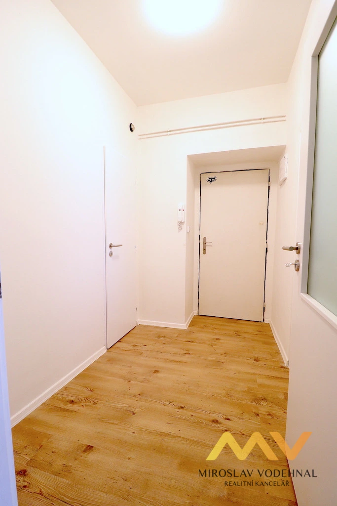 Jedná se o částečně zařízený byt po kompletní rekonstrukci, vybavený moderní kuchyňskou linkou se spotřebiči (el. trouba, sklokeramická varná deska, lednice s mrazákem, mikrovlnná trouba, odsavač par). V obývací části je vybudována galerie 8 m2 s výškou 1,3 m a přístupná po dřevěných variabilních schůdkách vhodná pro spaní, pracovní kout nebo jako odkládací prostor. Ložnice je nezařízená. Koupelna je se sprchovým koutem, toaletou a pračkou. V předsíni je prostor na umístění šatní skříně. Sklep není k dispozici.