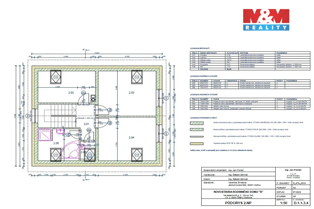 Dům má zastavěnou plochu 83 m² a je navržen jako dvoupodlažní objekt s plánovanou dispozicí 4+kk, která počítá s komfortním rodinným bydlením. Součástí návrhu je také velká technická místnost, poskytující dostatek prostoru pro technologie domu i praktické zázemí. Celková užitná plocha činí 121 m². Dispoziční řešení je však možné upravit dle vlastních představ, což dává budoucímu majiteli maximální flexibilitu při dokončení stavby.